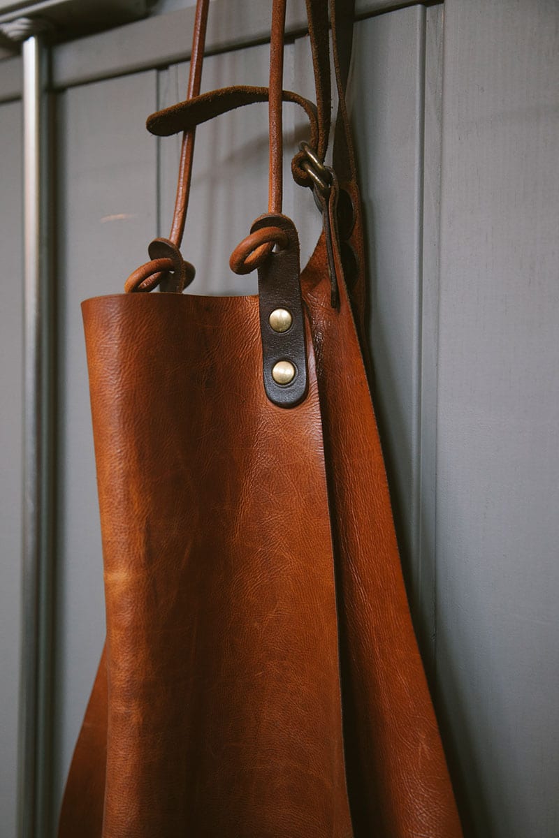 Se sienten cómodos con el cuero artesanal, por ser un material “durable, versátil y, sobre todo, natural”. Al estar curtido con productos naturales, como taninos de cortezas de acacia y mimosa, y engrasado con aceite de oliva, se asegura un buen envejecimiento de la pieza. Esta va oscureciéndose de manera natural. Mostrando que es, casi, un objeto orgánico.