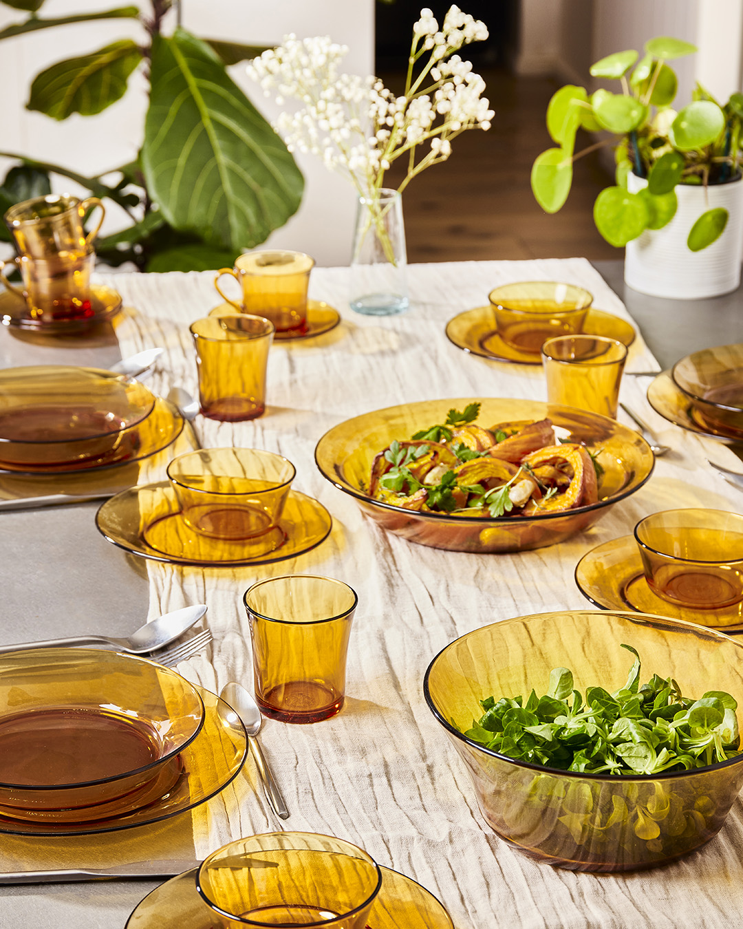 Lo que viste y se guarda en nuestras cocinas alberga muchos más recuerdos que cualquier otro objeto que entra en nuestros hogares. Y más de uno siempre suele ver con mirada cómplice aquellas tazas y platos en color ámbar -o en verde botella- que nuestras abuelas utilizaban para todo. Aunque sabemos que el éxito del Duralex no se debía solo a cuestiones estéticas, sino más bien a su capacidad para resistir ante caídas y cambios bruscos de temperatura.
