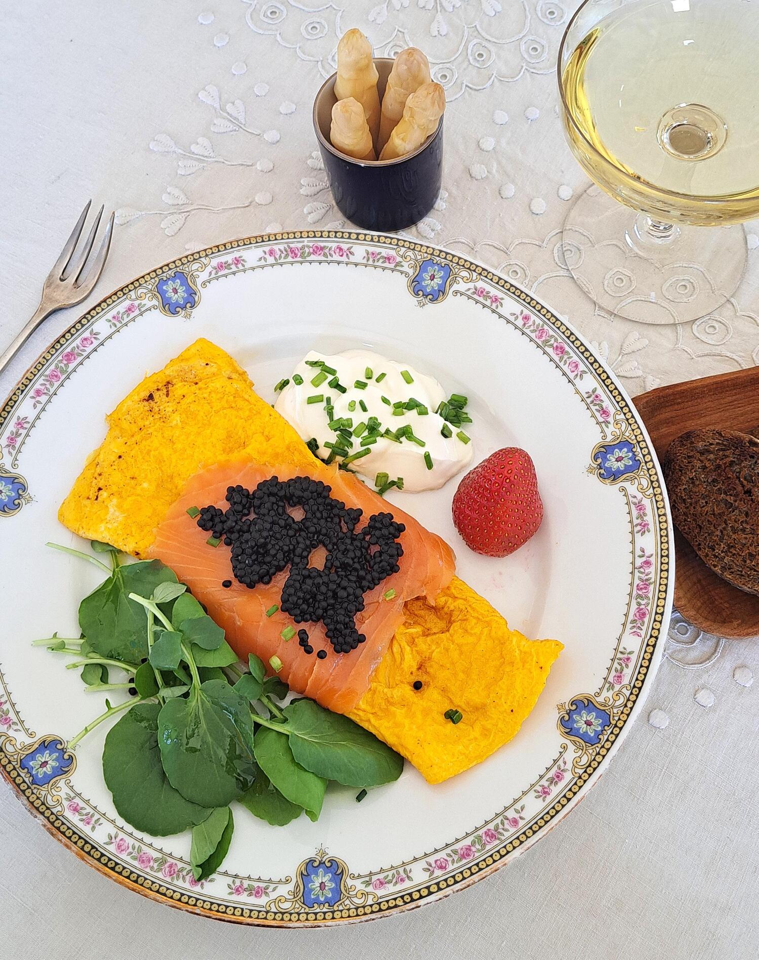Se prepara con huevos (“de gallina virgen”) y se acompaña con manjares como yemas de espárragos, caviar o salmón de Noruega. De hecho, el sabor que intuimos que tiene esta tortilla, con lo más sofisticado del mar, podría combinar perfectamente con un maridaje como Alhambra Reserva 1925 y su sabor redondo, equilibrado y con notas florales.