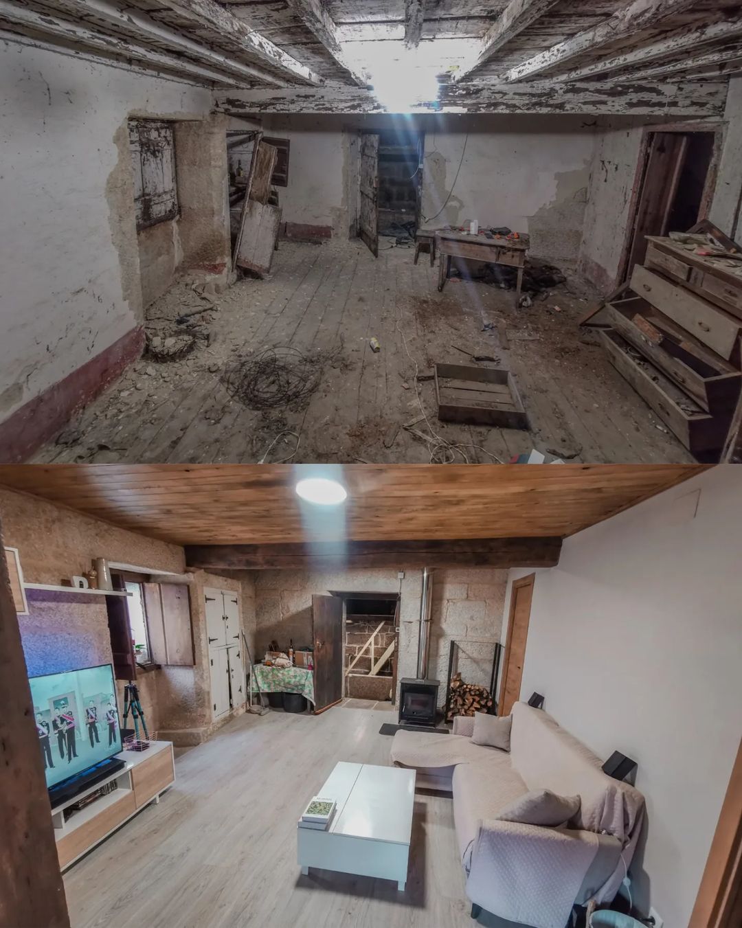 ¿Qué ocurre cuando una pareja joven invierte todo su dinero en comprar una casa en ruinas con un gran potencial en O Ribeiro? Que la reforma integral queda, completamente, en sus manos. Sí, tanto la electricidad como la fontanería, la carpintería y, por supuesto, el diseño de interiores de su nuevo hogar. Y aunque en un primer momento pudiera parecer que es un argumento más propio de una película como Esta casa es una ruina, lo cierto es que Rocío y Cristian logran que su aventura resulte de lo más entretenida.
