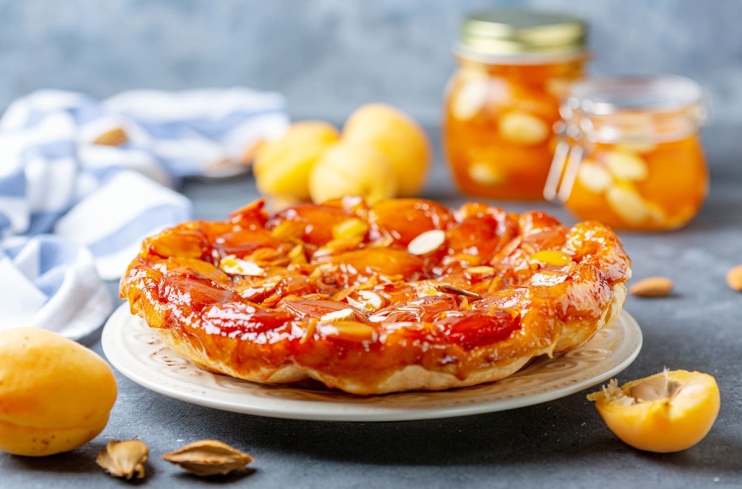 Cuenta la leyenda que la emblemática Tatin fue el resultado de un accidente, cuando se dejó caer la tarta al revés en el horno y se creó un postre a la inversa. Tradicionalmente, este pastel se ha preparado siempre con manzana, pero hay muchas otras frutas que funcionan con la misma receta. Una de ellas es el albaricoque, que aporta una textura muy cremosa y que genera un combo de texturas perfecto con el fino hojaldre de la base. Además, podemos presentarla con unas láminas de almendra tostada, que aportan un contrapunto crujiente delicioso.