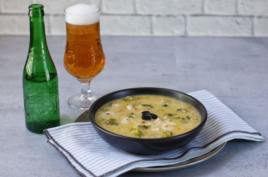 Alhambra Reserva 1925 con su cuerpo suave y ligeramente afrutado, ofrece la frescura necesaria para equilibrar la cremosidad del chowder, mientras que su toque ligeramente amargo limpia el paladar entre cucharadas, realzando cada sabor del plato sin opacarlo.