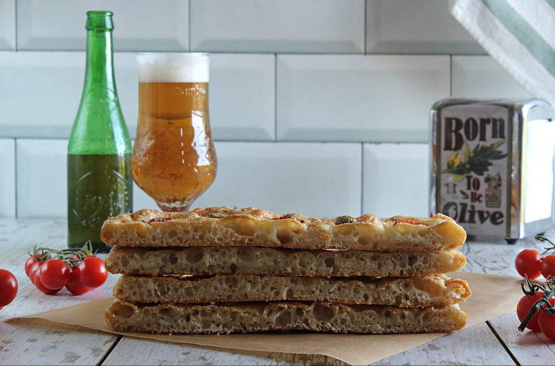 La receta de esta focaccia (crujiente, con el sabor intenso de las aceitunas, el toque aromático del romero y el punto dulce de los tomates cherry) es perfecta para acompañar con la Alhambra Reserva 1925, la cerveza más icónica de Cervezas Alhambra.