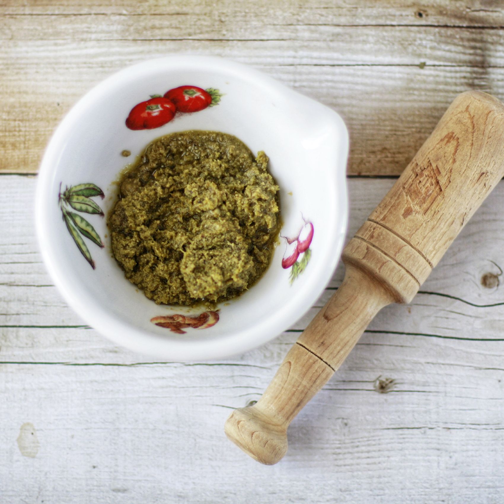 Para lograr un pesto auténtico y lleno de sabor, nada mejor que prepararlo en mortero. Este método tradicional permite que los ingredientes liberen sus aceites esenciales de forma natural, creando una salsa más aromática y con una textura perfecta. Con solo unos pocos golpes, el ajo, albahaca, piñones, queso y aceite de oliva se mezclan de manera ideal, resultando en un pesto casero que elevará tus mejillones a otro nivel de sabor.